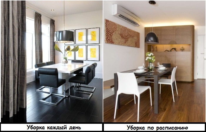 Обычно напольное покрытие черного цвета выбирают тогда, когда нужно создать стильный контраст со светлыми стенами. Согласны, это выглядит красиво, привлекает внимание, но в будущем доставляет слишком много проблем. На таких полах сильно заметна пыль и другие загрязнения. А если вы когда-нибудь неосторожно сдвинете кресло или диван, оставшаяся царапина, которую ничем не получится замаскировать, будет служить постоянным напоминанием о вашей оплошности. Конечно, покрытие дубового или, например, орехового цвета тоже пачкается и царапается, но на нем гораздо меньше заметны недостатки.