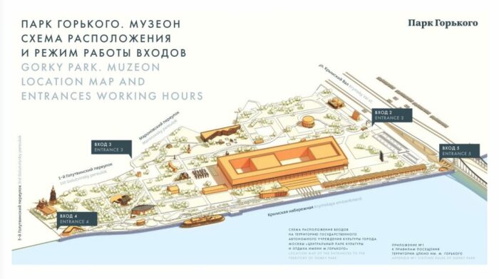 План-схема расположения главных объектов парковой зоны Музеона (Парк Горького, Москва). | Фото: russiable.in.