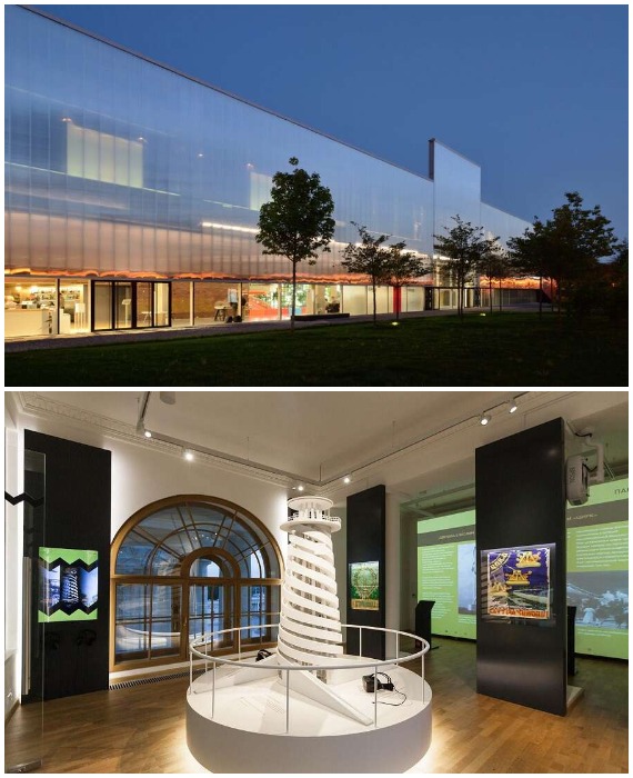Музей современного искусства «Гараж» и макет пресловутой парашютной вышки (Парк Горького, Москва).