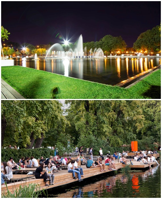 Фонтаны и водоемы – излюбленное место отдыха в летний зной (Парк Горького, Москва).