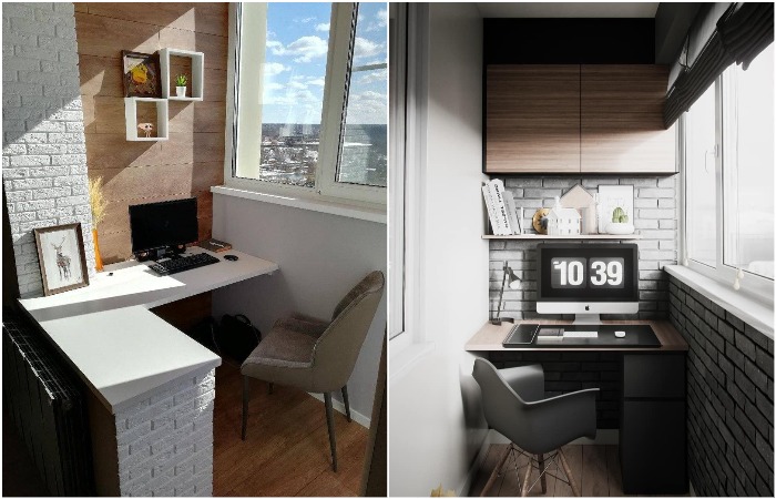 И самый идеальный вариант для тех, у кого балкон свободен, а не превращен в склад спортивного инвентаря, сломанной бытовой техники и банок для консервации. Для того, чтобы сделать из помещения полноценный кабинет, его нужно утеплить – так вы будете чувствовать себя здесь комфортно в любое время года. При выборе мебели ориентируйтесь на размеры балкона – на одних поместится полноценный письменный стол с мягким офисным креслом, а на других – только стул и подвесная консоль. В качестве освещения можно использовать настольную лампу, а в качестве систем хранения – полки.
