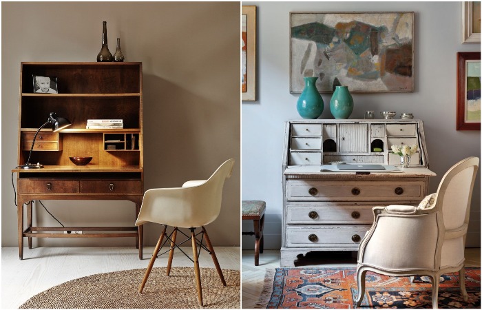 Ретро-секретеры хорошо вписываются в современный интерьер