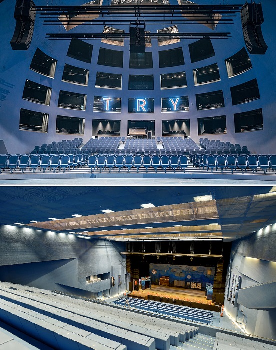 Стоит также отметить, что Большой театр (или просто «Гранд») и Многопрофильный театр (он же «Мультиформ») расположены друг напротив друга на одной горизонтали, что дает возможность объединить пространство в Супертеатр. При этом в центре образуется огромное пространство длиной 100 метров, что позволяет проводить экспериментальные театральные представления, организация которых была бы невозможна в любых других закрытых помещениях. По словам архитекторов, «новые возможности театральных конфигураций и сценических декораций вдохновляют на постановки в невообразимых и спонтанных формах».