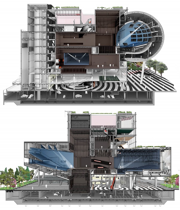 Проект, разработанный международной командой архитектурной, исследовательской и дизайнерской компанией OMA (базируется в Роттердаме, Нидерланды), во главе с голландскими архитекторами Ремом Колхасом и Дэвидом Джаноттеном, лауреатами Притцкеровской премии, обещал стать звездным дополнением к городскому ландшафту Тайбэя, поскольку строительство планировалось недалеко от ночного рынка Шилинь, известного коммерческого района в непосредственной близости от городского центра города. Разработчикам OMA, по мнению жюри, лучше всего удалось интегрировать масштабную структуру культурного предназначения для всех слоев общества в крупный коммерческий район. Хотя им пришлось провести немалую работу в исследовании топологии театрального пространства, требующего особого внимания к технической составляющей, ведь любой промах мог бы оказаться роковым для такого рода структуры.