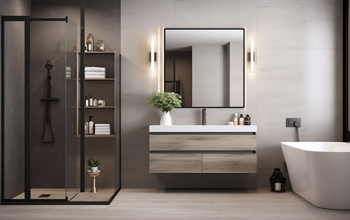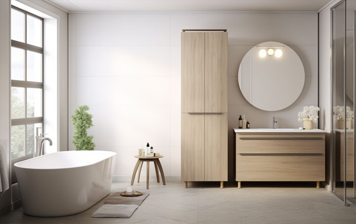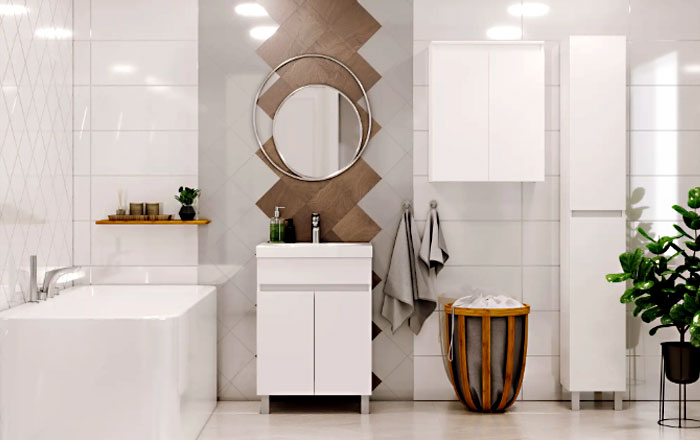 Может показаться, что шкафы только съедят место в ванной, где и так не очень просторно. Проблему легко решит специальная модульная мебель для ванной. Это и напольные шкафы-пеналы, и подвесные шкафчики, и шкафчики с зеркальными дверями. Они отличаются небольшой шириной — от 20 сантиметров — и продаются отдельно друг от друга. Все рассчитано так, чтобы мебель вписалась даже в узкое пространство, например между раковиной и душевой кабиной. Каждый шкафчик можно расположить там, где захочется. Чтобы точно не прогадать с расстановкой мебели, в гипермаркетах товаров для дома и ремонта можно воспользоваться услугой бесплатной проектировки ванной. Также в магазине или на сайте можно заказать и услугу установки мебели.