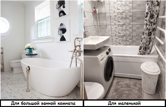 Для маленькой комнаты отдельно стоящая ванна не подойдет