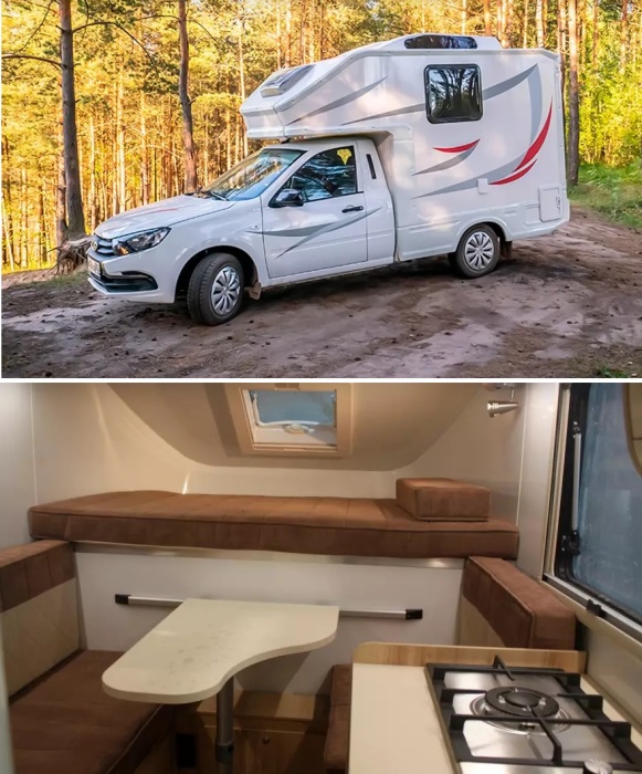 Самый маленький и доступный автофургон продуман до мелочей, чтобы путешествующие могли чувствовать себя как дома.