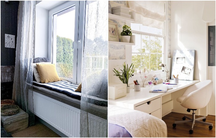 Из подоконника можно сделать рабочий стол или зону отдыха