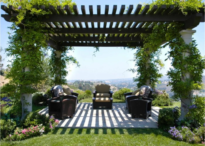 Пергола способна разграничивать различные функциональные зоны на участке, отделяя, например, отдельные зоны отдыха и отделяя из от других частей сада. Кроме того, она может использоваться для декорирования неэстетичных сооружений, таких как хозблоки, туалеты или мусорки.
