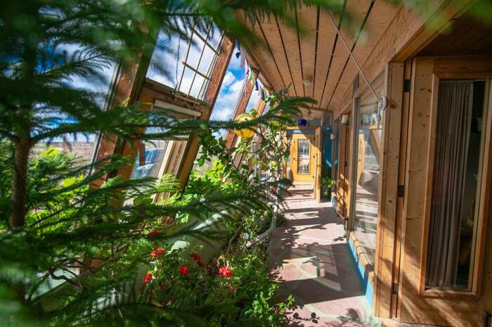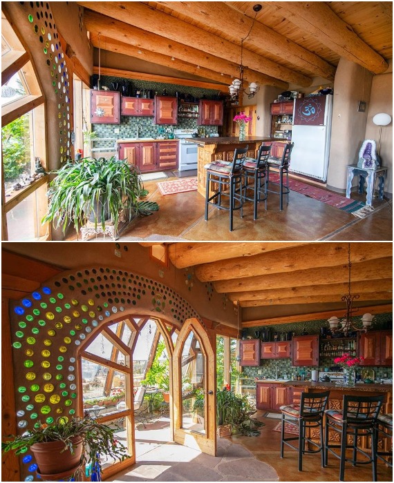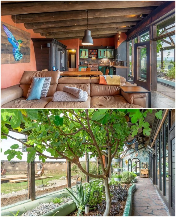 В дополнение к тщательно продуманному дизайну и оптимальной ориентации архитектурного сооружения, 40% здания было построено с использованием почвы и вторичных материалов, включая стеклянные бутылки, способствующие дополнительному освещению и сохранности тепла, что особенно ценно в зимнюю пору. Сейчас Vallecitos by Earthship Biotecture используется как гостевой дом, поэтому каждый желающий может пожить пару тройку дней в необычном доме, заранее забронировав через Airbnb.