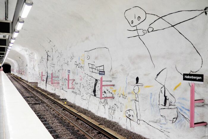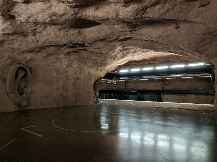 Особенно впечатляющими являются станции синей ветки, однако и на красной линии есть на что посмотреть. Многие из этих подземных станций буквально вырублены в скальных породах, создавая поистине грандиозное зрелище. А сделано это из-за особенностей геологической структуры города. Стокгольм находится на архипелаге, состоящем из множества островов, что делает строительство подземного метрополитена сложным и вызывает необходимость использования скальных пород в качестве естественной защиты.