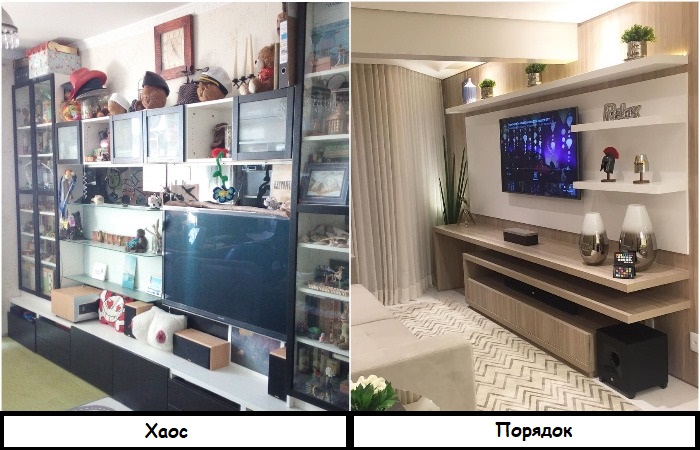 Пожалуй, этот пункт один из самых сложных, так как здраво оценить обстановку, чтобы понять, какие вещи вам действительно нужны, а от каких лучше отказаться, может не каждый. Попробуйте просто задать себе вопрос: «Что потеряет комната, если я это уберу?» Старые книги, которые вы давно не читаете, статуэтки, привезенные из путешествия, пыльные вазы, сомнительный декор. Старайтесь придерживаться правила «меньше значит лучше» – оно еще никому не навредило. Как только вы избавитесь от лишних вещей, то сразу сможете заметить недостатки планировки, понять, что с ней не так, и как это можно исправить. Кроме того, подобное расхламление позволит вам освободить место для новых, прекрасных вещей, которые действительно будут полезны.