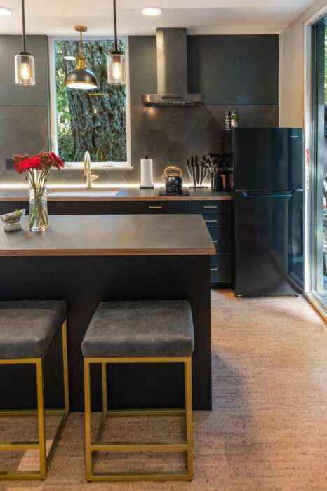 Зона кухни-столовой. | Фото: dreamtinyliving.com.