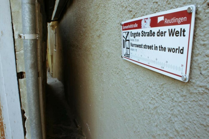 Однако, самая узкая улица в мире находится не в Стокгольме. Spreuerhofstrasse — это название самой узкой улицы на планете, находится она немецком городе Ротлинген. Где в самой широкой точке можно развернуться, не касаясь стен, а в самой узкой — едва протиснуться. Ширина улицы колеблется от 31 см до 50 см, что позволило ей занять почетное место в Книге рекордов Гиннеса. Согласно местным историям она возникла не по замыслу архитектора, а вследствие ошибки, что сделало Spreuerhofstrasse еще более привлекательной для туристов и любителей уникальных мест.