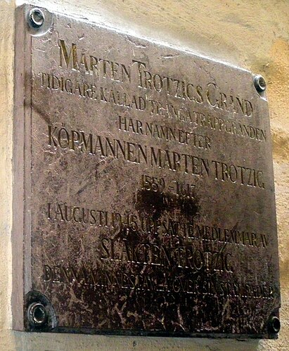 В 1595 году он поклялся в верности шведскому монарху, что дало ему возможность приобретать земельные участки. Через два года Тротзиг купил здание в Гамла Стан (Старый город), которое граничило с тогдашним Trångsund - переулком, который был известен как «узкий пролив». А уже к 1599 году он стал владельцем дома и находился напротив этого переулка.