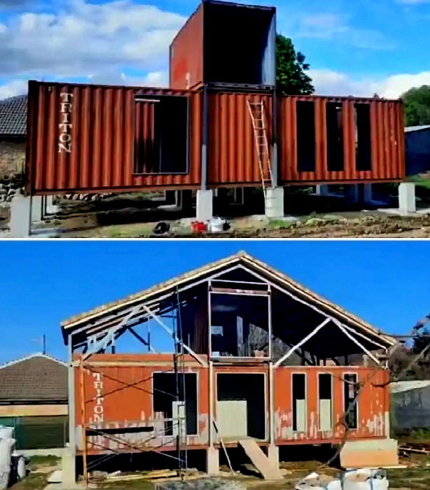 Но прежде чем резиденция, построенная из трех контейнеров, обратила на себя внимание, пришлось немало потрудиться, как разработчикам проекта, так и подрядчикам, и самим владельцам, ведь они принимали активное участие во всех процессах. Имея видовой участок на небольшой возвышенности в окружении лесистых склонов с видом на реку Чега, владельцам оставалось лишь грамотно использовать открывающиеся возможности. Поскольку традиционное строительство занимает довольно много времени, да и требует немало финансовых влияний, выбор пал на грузовые контейнеры, которые в морской державе можно приобрести по доступной цене и без каких-либо проблем.