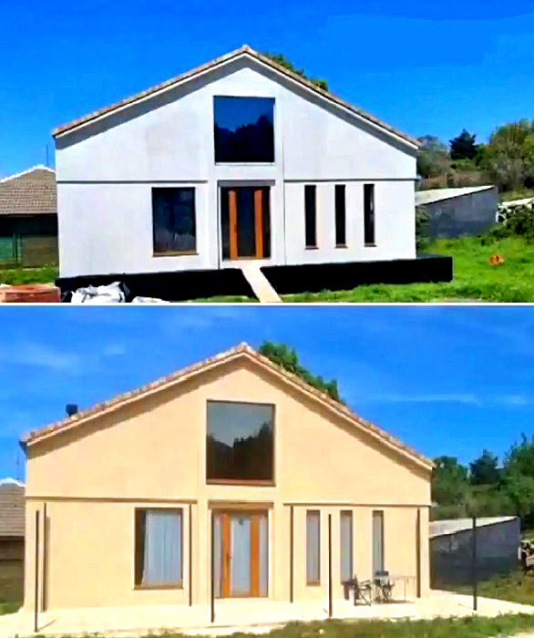 Контейнеры накрыли двускатной крышей, оштукатурили и покрасили (Navafri, Испания).