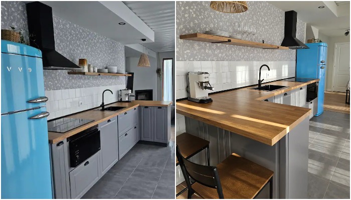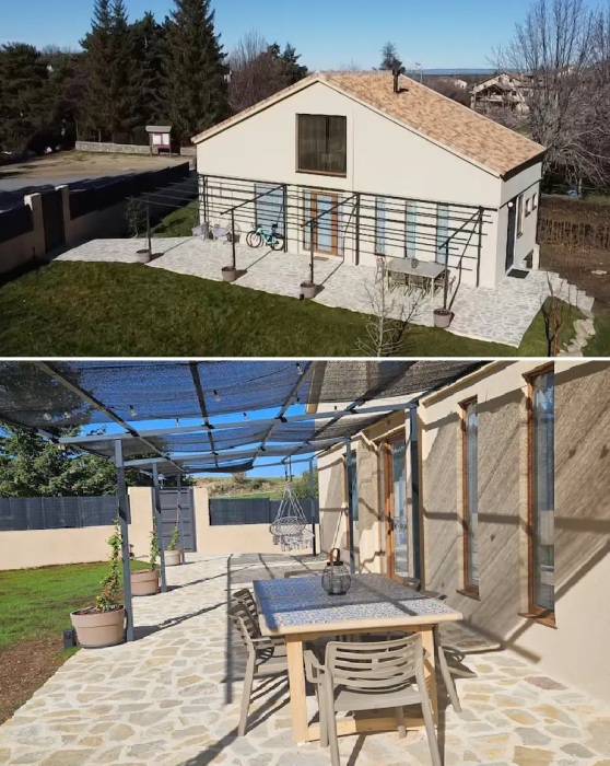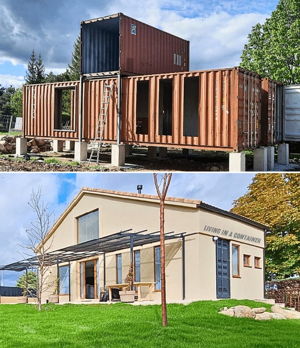 В Испании не так много контейнерных домов, как в США или Австралии, например, но те, что имеются, открывают новые горизонты в строительстве альтернативного жилья. Чего только стоит необычная резиденция в живописной местности Навафрия, которая демонстрирует органичное сочетание современности и классического очарования. Три морских контейнера стали основой загородного дома (Navafri, Испания). | Фото: airbnb.com.py. Контейнерные дома постепенно завоевывают весь мир, и Испания не стала исключением. В идиллической местности Навафрия (Navafri) в провинции Сеговия, появилась удивительная резиденция, глядя на которую сразу и не определишь, что ее основой стали исписанные морские контейнеры. А все потому, что архитекторы смогли не только построить современный и надежный дом, при оформлении они отдали предпочтение классике, что и стало причиной такого необычного, как для контейнерного сооружения образа. Выверенная установка контейнеров позволила построить дом с классическим экстерьером (Navafri, Испания). Читайте также - Заведения общественного питания, а также сервисы доставки еды стали намного более конкурентоспособными благодаря внедрению приложений, работающих на мобильных устройствах на базе iOS и Android. Процент владельцев телефонов, которые соответствуют базовым требованиям по функционалу и производительностит - разработка мобильного приложения для доставки еды по доступным ценам. Но прежде чем резиденция, построенная из трех контейнеров, обратила на себя внимание, пришлось немало потрудиться, как разработчикам проекта, так и подрядчикам, и самим владельцам, ведь они принимали активное участие во всех процессах. Имея видовой участок на небольшой возвышенности в окружении лесистых склонов с видом на реку Чега, владельцам оставалось лишь грамотно использовать открывающиеся возможности. Поскольку традиционное строительство занимает довольно много времени, да и требует немало финансовых влияний, выбор пал на грузовые контейнеры, которые в морской державе можно приобрести по доступной цене и без каких-либо проблем. Контейнеры накрыли двускатной крышей, оштукатурили и покрасили (Navafri, Испания). Заказчики пожелали иметь уютную загородную резиденцию, которую можно использовать на выходные или во время отпуска, ну а в остальное время попросту сдавать через онлайн-площадку Airbnb. Чтобы не тратиться на основательный фундамент, который в случае с контейнерами не является обязательным элементом, разработчики остановились на бетонных опорах, возвышающихся над землей. Такое расположение позволяет минимизировать влияние на почву, при этом спасает от затоплений во время сильных осадков, когда вода устремляется со склонов холма к реке. Списанные грузовые контейнеры до и после преобразования (Navafri, Испания). На бетонные опоры установили два 40-футовых контейнера, а вот 20-футовый взгромоздили на них, в центре. Авторы Novate.ru хотели бы отметить, что такое расположение позволило сделать традиционную двускатную крышу, а заодно и поднять потолки на нижнем уровне. А еще, после того как индустриальный вид контейнеров искусно спрятали за толстым слоем утеплителя, а затем еще оштукатурили, покрасили, дом приобрел вполне привычный внешний вид. Дверь, ведущая в гостиную, сохранила индустриальный вид (Navafri, Испания). | Фото: instagram.com. Благодаря такой хитрости загоро