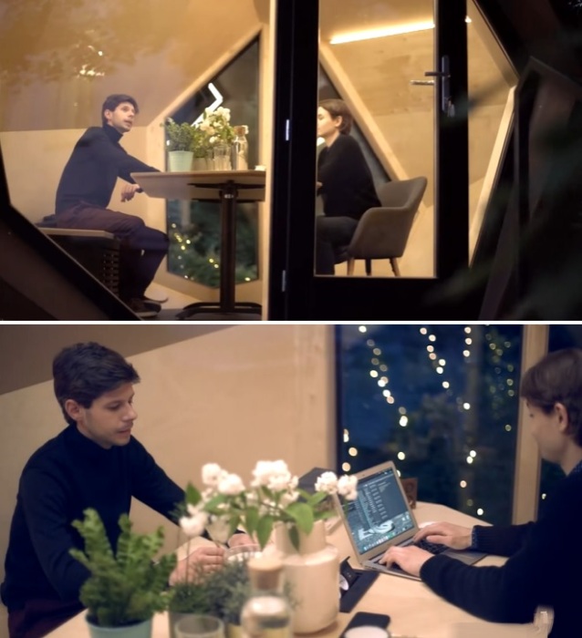 Проект причудливой модели Workstation Cabin разработала венгерская творческая студия Hello Wood. А все потому, что для большинства не требовалось рано вставать, тратить кучу времени на то, чтобы в переполненном общественном транспорте или в пробках на своем авто добираться до места работы. Хотя, когда ограничения были сняты, многие поняли, что мечта работать из дома разбивается о быт. Как оказалось, многие процессы невозможно выполнять из-за постоянных отвлекающих факторов (домочадцы, домашние животные, почтальон и т. д.), выбивающих из рабочего ритма.