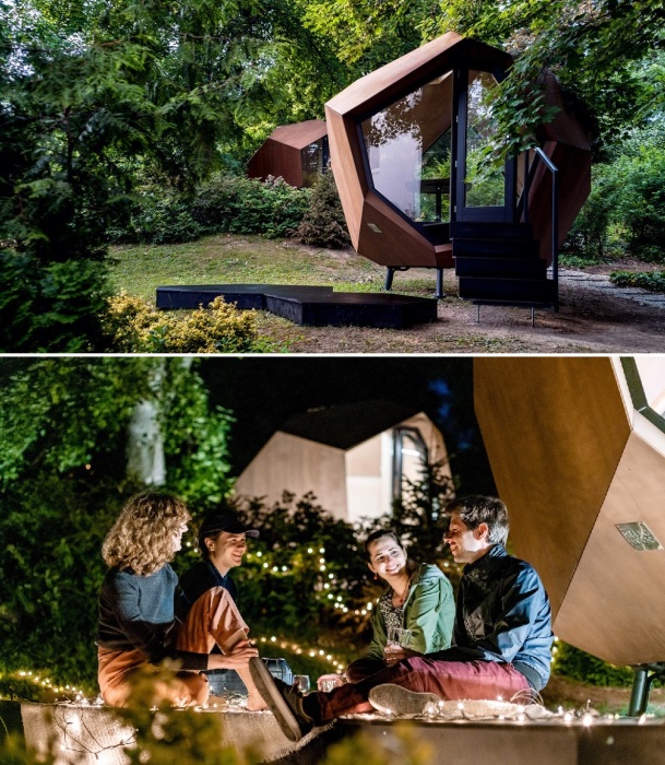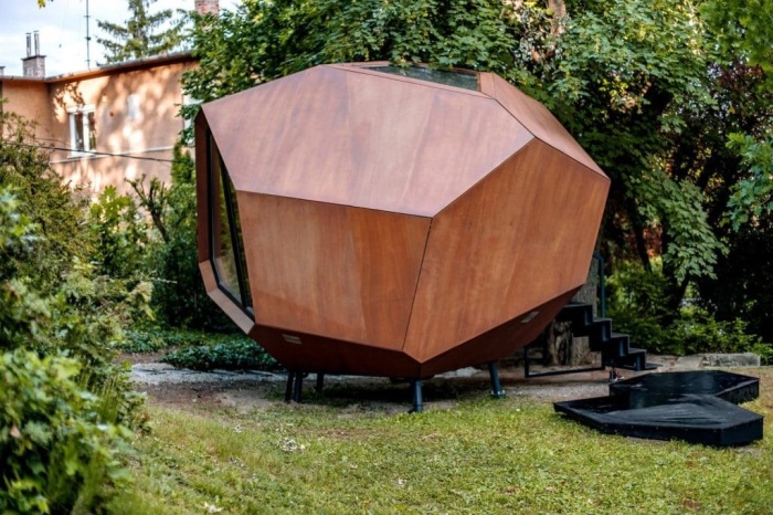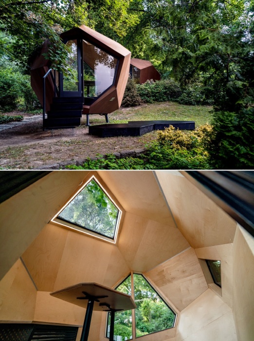 Чтобы этого избежать, многие сотрудники на «удаленке» стали задумываться о приобретении или строительстве изолированных крошечных домиков, которые в любое время можно было бы перепрофилировать, когда надобность в домашнем офисе пропадет. На страницах Novate.ru можно увидеть массу интересных проектов, связанных с разделением жизненных пространств, но 15-гранный домик от венгерской дизайн-студии Hello Wood также заслуживает нашего внимания.