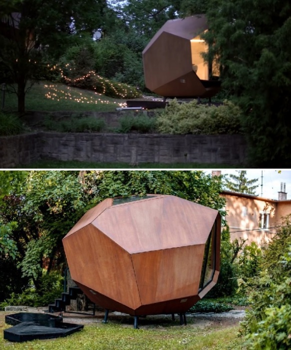 С каждым днем все больше людей предпочитают работать из дома, и несмотря на то, что во многих странах давно сняты ограничения, связанные с пандемией, сохраняется тенденция к гибкому рабочему графику. Это приводит к возрастающему спросу на строительство или приобретение домашних офисов или просто личного пространства, изолированного от основного места жительства. Поскольку спрос порождает предложение, венгерская архитектурная студия Hello Wood внесла свой вклад, разработав оригинальную структуру в виде космической капсулы, которую можно пристроить в саду, на небольшой лужайке и даже на плоской крыше.