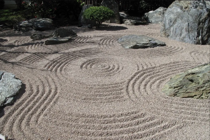 Главное направление в создании японских садов камней заключается в стремлении к симметрии и балансу. И сегодня архитекторы садов используют элементы, такие как камни разной формы и размера, чтобы создать иллюзию горных ландшафтов, а аккуратно расчищенный песок или гравий символизирует воду, текущую в реках и озерах.