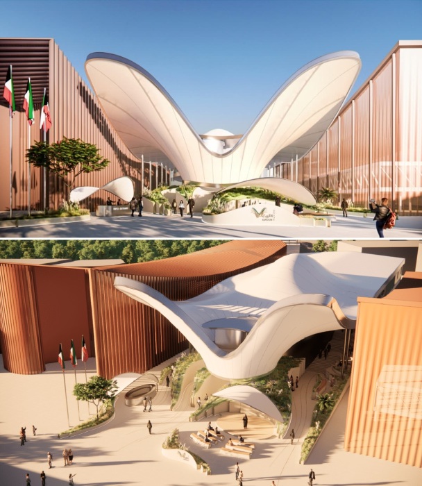 Вдохновленные характерным ландшафтом и традициями Кувейта, специалисты Лаборатории визионерской архитектуры (LAVA) спроектировали завораживающий павильон с двумя символическими крыльями, «обнимающими» прибывающих посетителей на знаковое мероприятие, в котором планируется участие 150 стран, а 110 из них представят свои национальные павильоны. Сами же организаторы надеются, что Выставку посетит около 28 миллионов человек, которые своими глазами увидят все великолепие конструкции «крылатого» павильона Кувейта.
