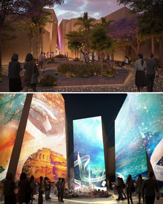 Известная архитектурная фирма Foster + Partners, которая не раз представляла потрясающие проекты национальных павильонов различных стран мира, на этот раз разработала не менее удивительный проект для Саудовской Аравии. Их дизайн предусматривает композицию органических форм, напоминающих формы традиционной саудовской деревни. Создавая пространственный опыт, перекликающийся с исследованием городов и поселков удивительной страны, для посетителей будет организована соответствующая обстановка для захватывающего аудиовизуального взаимодействия, нацеленная на встречу с неизведанными чудесами Саудовской Аравии.