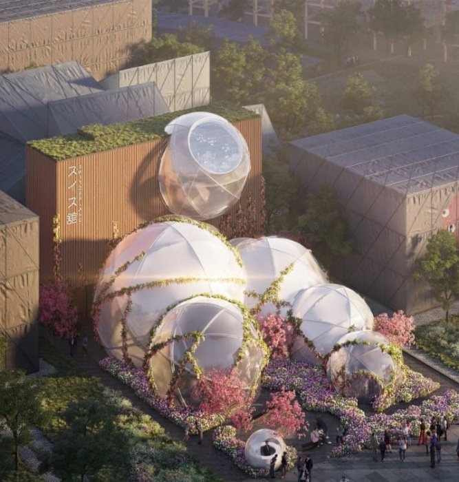 Главной идеей Швейцарского национального павильона также является природа и стремление человечества сосуществовать с ней в гармонии. В соответствии с этой тематикой, эффектная композиция, спроектированная международной командой Manuel Herz Architekten, Nüssli и Bellprat Partner, представляет собой сферы, возвышающиеся над благоухающей массой цветов и растений. При этом, продолжая идею гармоничного взаимодействия, удивительной красоты структура оставит наименьший экологический след, поскольку сферические оболочки выставочных пространств изготавливаются из тончайшего пластика и фольги, которые поддерживает сверхлегкая конструкция.