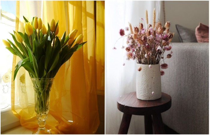 Ничто так не освежает интерьер, как букет цветов, стоящий в красивой вазе по центру стола. Если вы посмотрите на фото французских интерьеров, то обязательно обратите внимание, что практически во всех их квартирах присутствуют живые цветы – это особый шик. Ваза может быть стеклянной, керамической, яркой или пастельного оттенка – здесь все зависит от ваших предпочтений. Считаете, что нет смысла тратиться на живые букеты? Тогда обратите внимание на сухоцветы – они станут прекрасной изюминкой в осеннем интерьере.