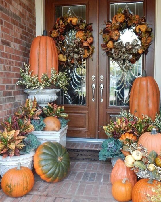 Не стоит забывать о том, что внешний вид дома — это тоже важная часть осеннего декора. Входная дверь – это лицо любого жилища, и ее оформление может задать тон всему остальному пространству. Собрать композиции из осенних овощей, цветов и даже листьев отличный вариант декора двери. Для этого стоит использовать подручные материалы, создать букет из ярких осенних листьев, добавить сухие цветы и, конечно, тыквы. Заплести венки из веток, повесить его на дверь, сплести букеты, расставив их в вазы на полу, дополнив яркими цветами или ягодами. Используя такие элементы, не только оживится входная дверь, но и создастся теплая атмосфера для гостей и домочадцев.