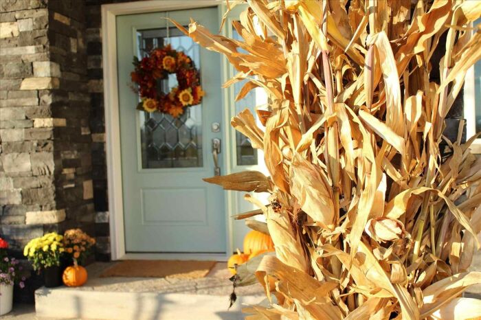 Если кажется, что осень — это только тыква и ее производные, то стоит сказать, что это глубокое заблуждение. Кукуруза — это идеальный элемент для оформления осеннего сада. С помощью стеблей кукурузы можно создать аккуратные декоративные композиции. Высокие стебли отлично смотрятся на фоне побелевших кустов или многолетников. Их можно использовать для создания заборчиков, арок или даже временных стен. А в сочетании с другими растениями и осенними декорациями, такими как фонарики и гирлянды, кукуруза придаст саду особый, сияющий вид.