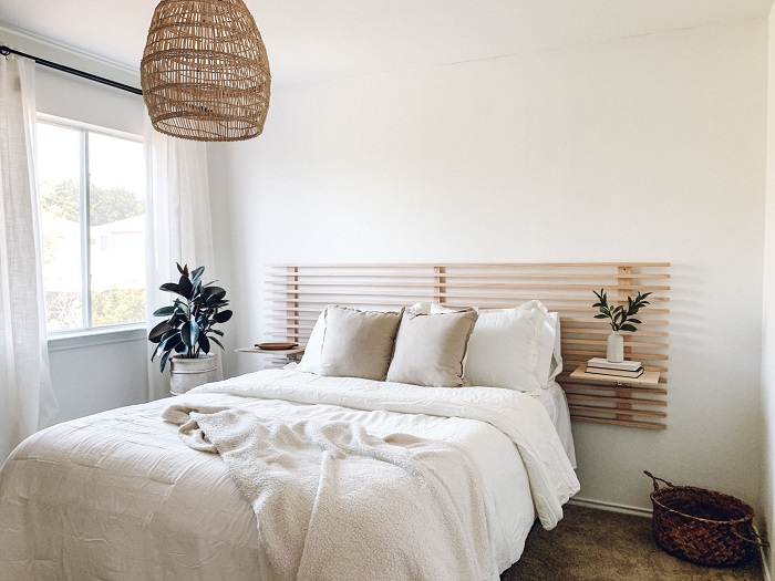 Воздушное изголовье из деревянных реек. / Фото: na-dache.pro