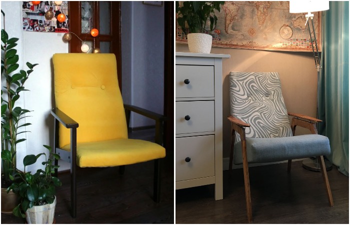 Не хотите возиться со старой мебелью? Тогда присмотритесь к новым креслам, но стилизованным под модели эпохи 60-х. Так как спрос на них вырос, многие магазины предлагают своим покупателям подобные предметы интерьера. Но вряд ли они будут выполнены из натурального дерева.