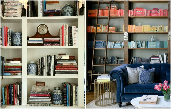 • По цвету. Например, первая полка может быть желтой, вторая – зеленой, третья – коричневой. Для вдохновения можете взглянуть на фотографии в интерьерных блогах – дизайнеры часто используют этот прием в своих проектах.