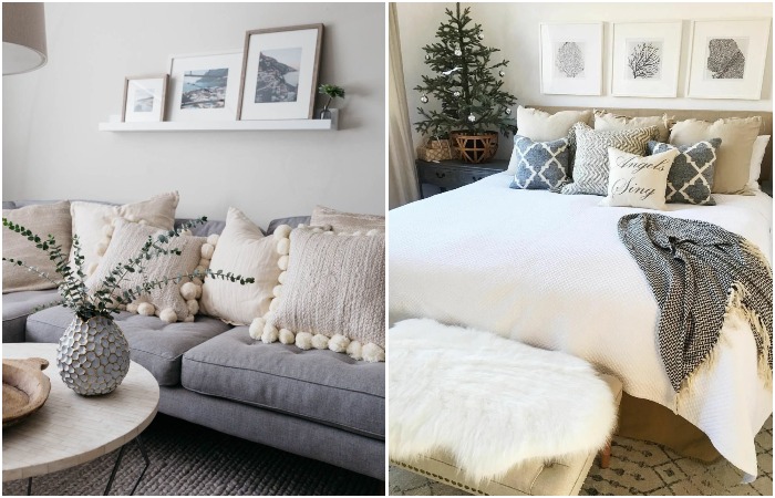 Прием 3: Украсьте кровать и диван подушками и пледами