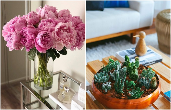 • Любите неприхотливые кактусы и суккуленты? Отлично, но не расставляйте их по одиночке – такие крохотные растения прекрасно смотрятся в группе. Для создания композиции можно использовать деревянные или металлические подносы – получится очень интересно.
